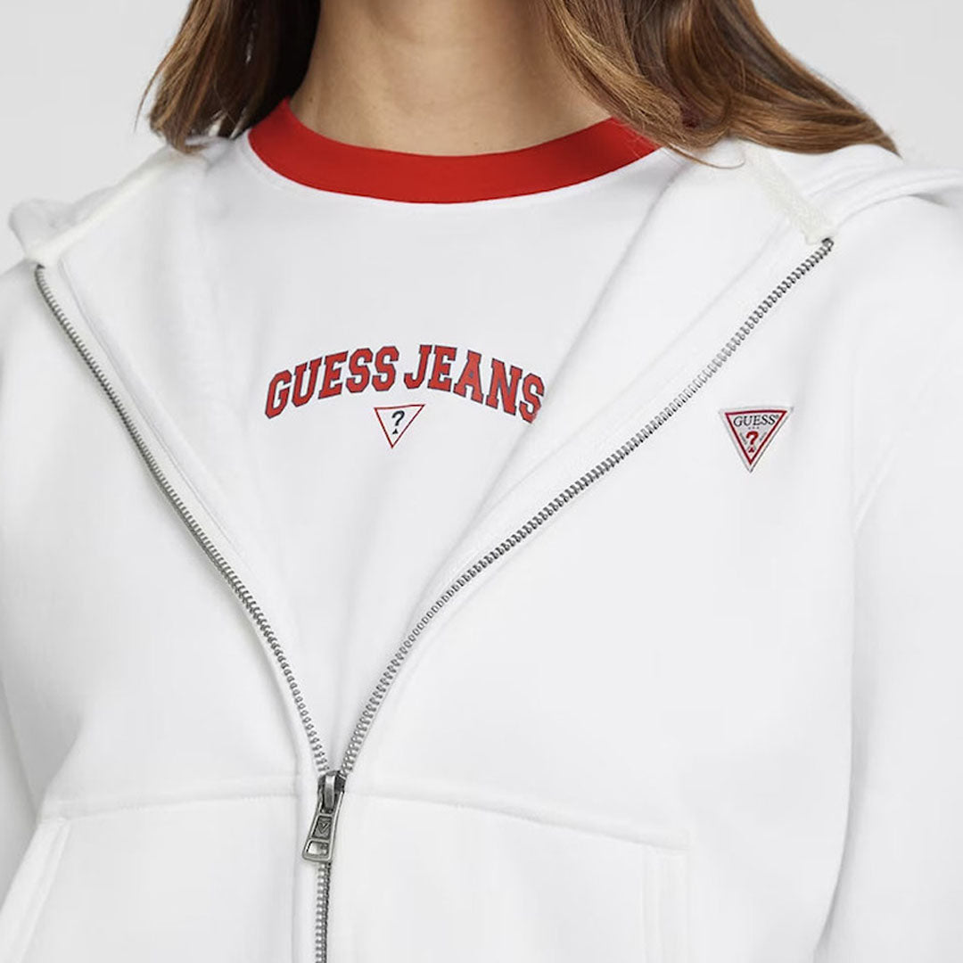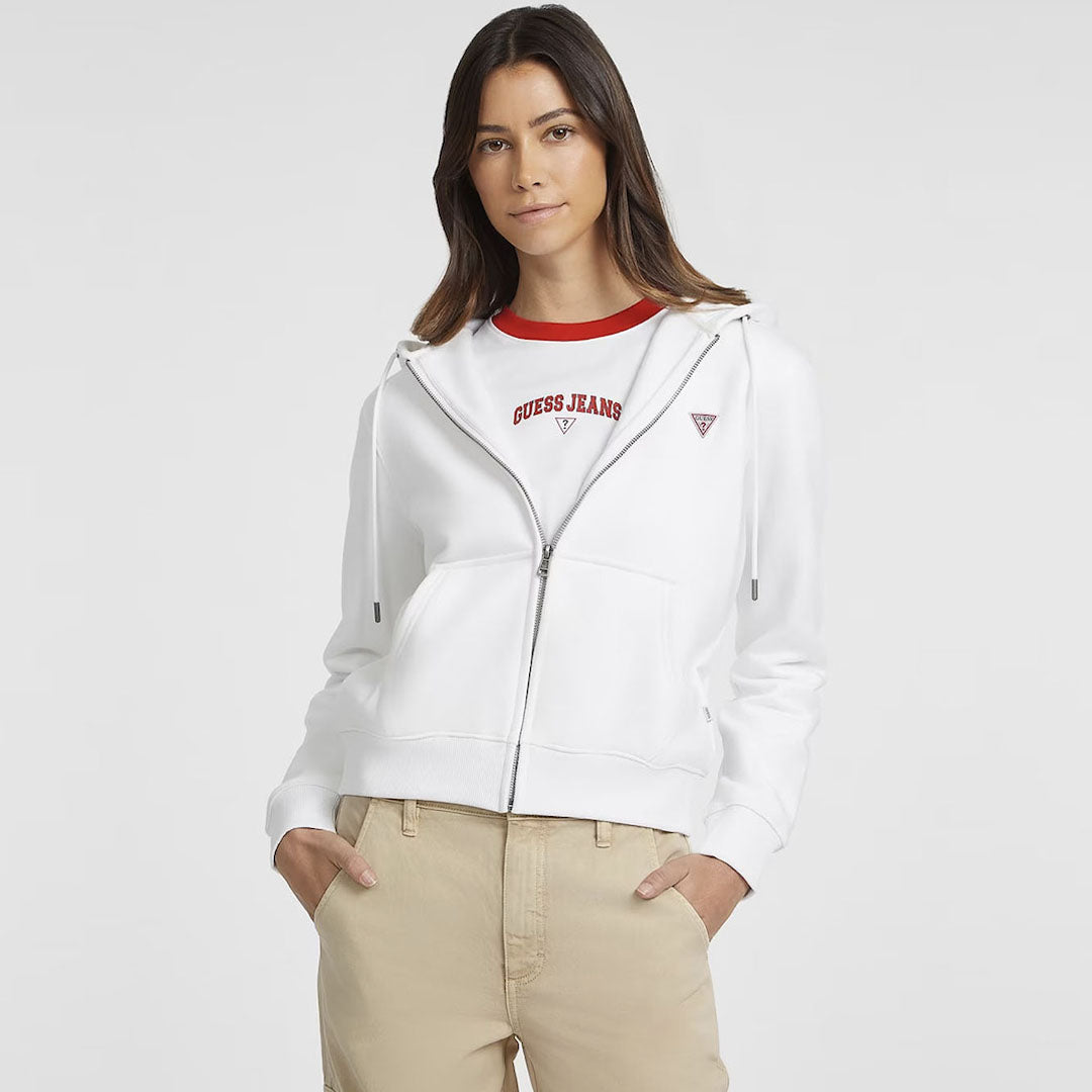 Duksi Guess (Modeli: W4YQ03KC811 G011) në ngjyrë rozë të zbehtë kombinon rehatinë dhe stilin modern. Me një dizajn të pastër dhe një pamje elegante